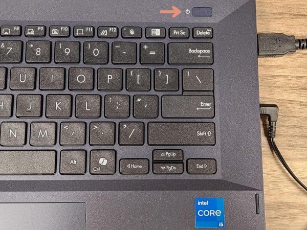 8. Press the power button in the top-right corner to turn on the system.